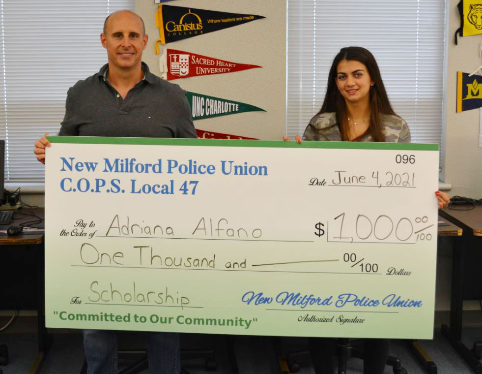 AdrianaAlfanois a recipient of the 2021 New Milford Police Union Criminal Justice Scholarship Award. She will be attending Western Connecticut State University in the fall and plans to major in Justice and Law Administration – Criminology.