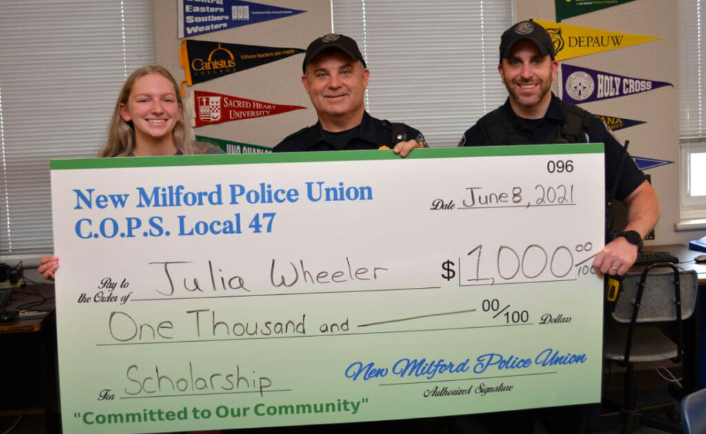 Julia Wheeler is a recipient of the 2021 New Milford Police Union Leadership Scholarship Award. She will be attending Western Connecticut State University in the fall and plans to major in International Business and Criminal Justice.