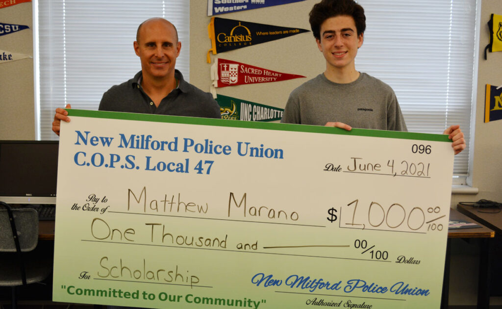 Matthew Marano is a recipient of the 2021 New Milford Police Union Leadership Scholarship Award. He will be attending Stonehill College in the fall and plans to major in Economics.